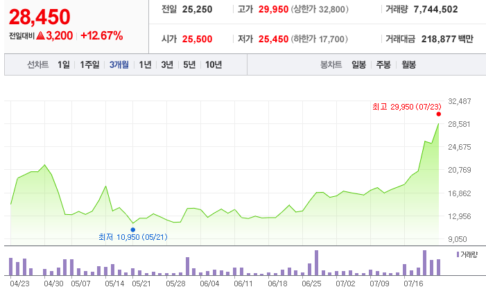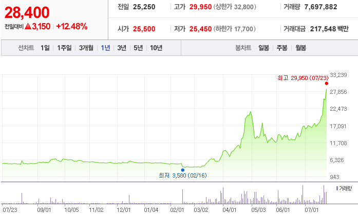 넥스트사이언스 주가는 올 2월 최저가인 3,580원을 찍은 후 동년 7월 최고가인 29,950원을 찍었습니다. 최근 넥스트사이언스 주가가 급상승한 원인은 관계사 나노젠이 개발 중인 백신 완성이 막바지라는 소식이 전해진 영향으로 볼 수 있는데요. 자세한 넥스트사이언스 주가 전망은 여기서 확인해보겠습니다.